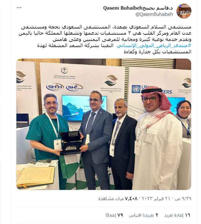 حيث تعد هذه ثالث مشاركة للمجموعة على التوالي ويأتي ذلك بناءً على الدعوة الكريمة المقدمة من مركز الملك سلمان للإغاثة والأعمال الإنسانية لعرض الخدمات المقدمة في المستشفيات السعودية في اليمن التي تتولى المجموعة تشغيلها .